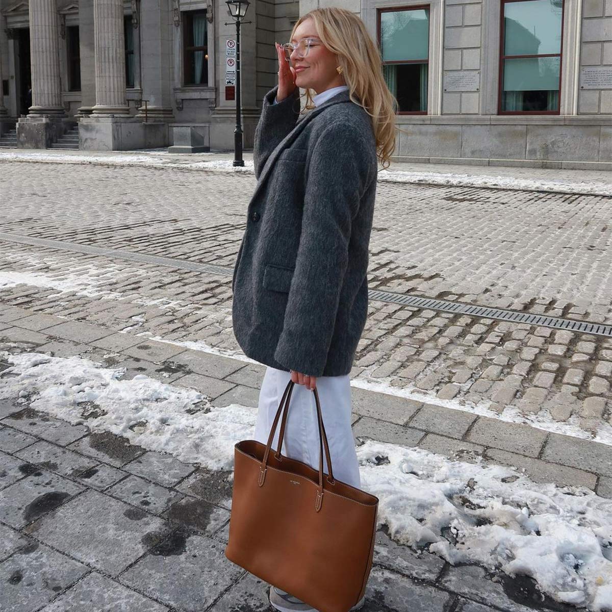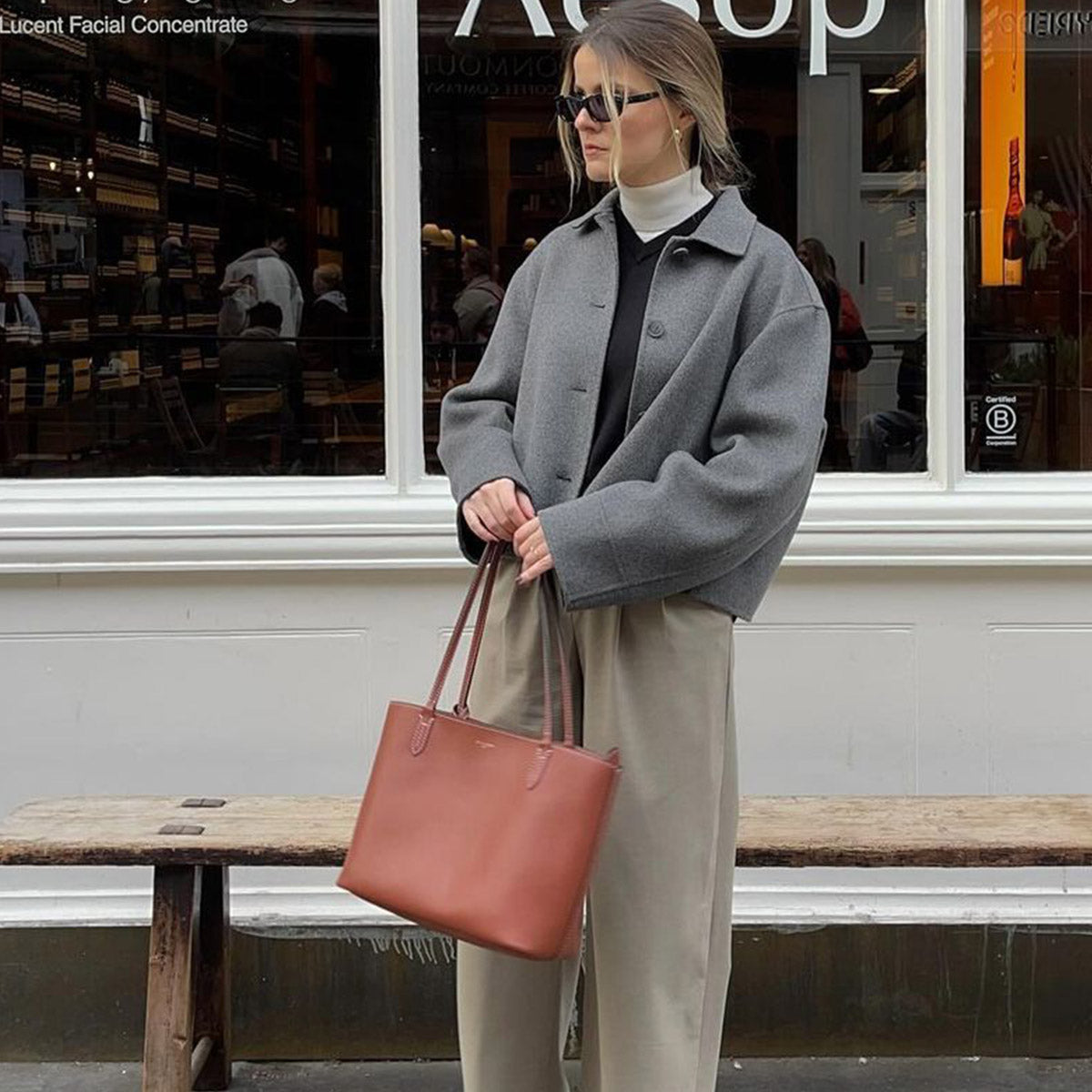 large tote in grained leather